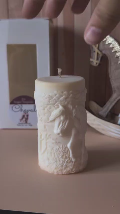 Bougie faite main décorative – Cheval & Far West – Parfum Fleur de Coton